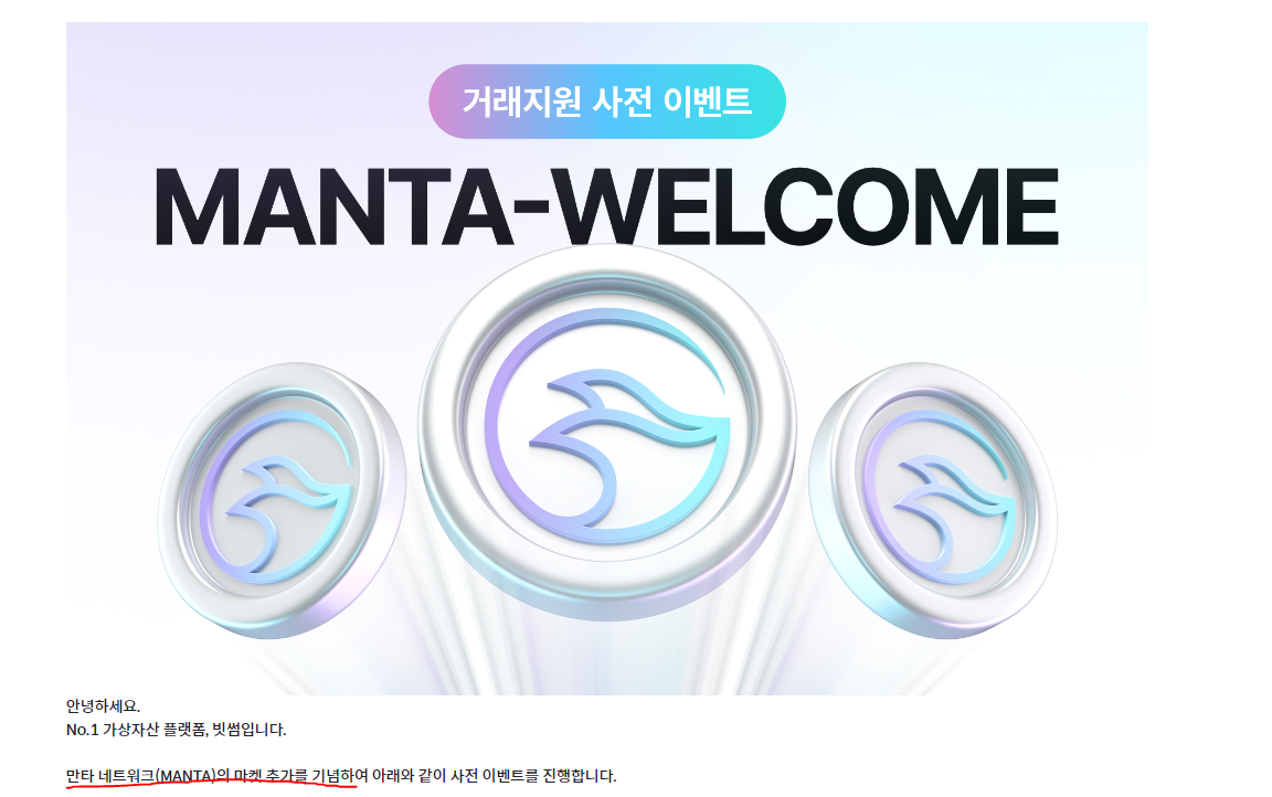 - 저 내용은 기우이고, 바이낸스와 빗썸 모두 ERC-20과 만타 모두 입금 받는다.