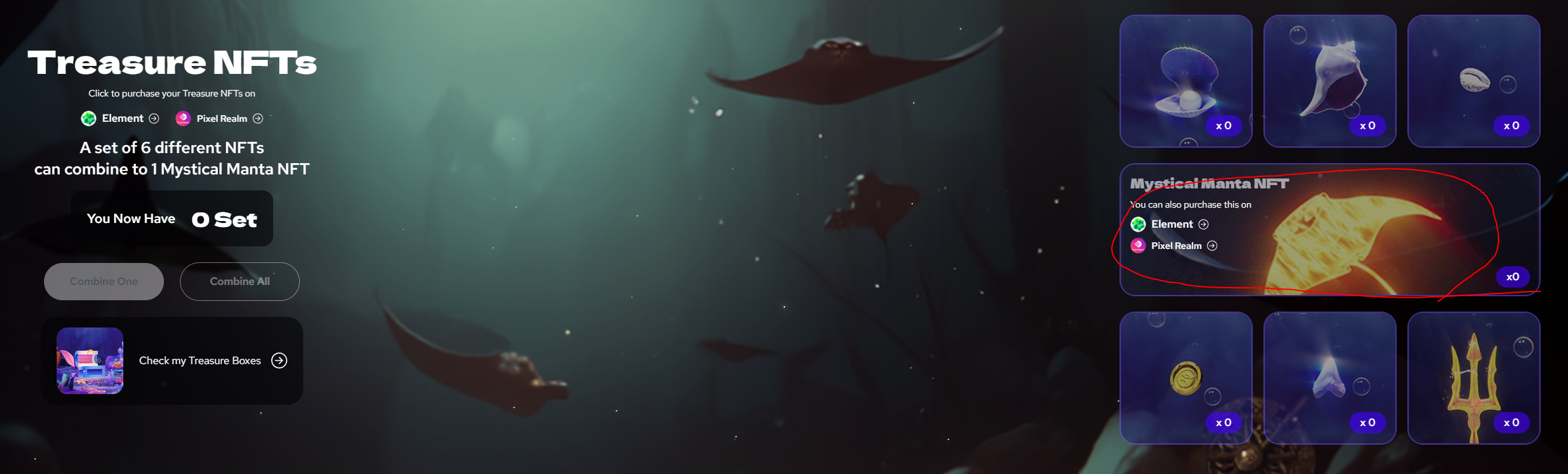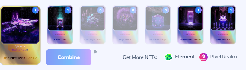 그리고 그렇게 모은 6개를 합치면 맨 왼쪽의 금색 NFT가 생성되는 방식!