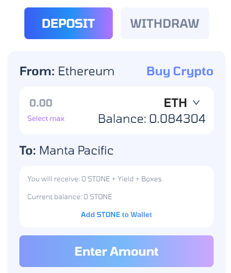 요런식으로 이더리움체인에서 만타체인으로 ETH와 USDC를 넘기면 STONE과 wUSDM 그리고 박스조각을 주는 녀석이었다.