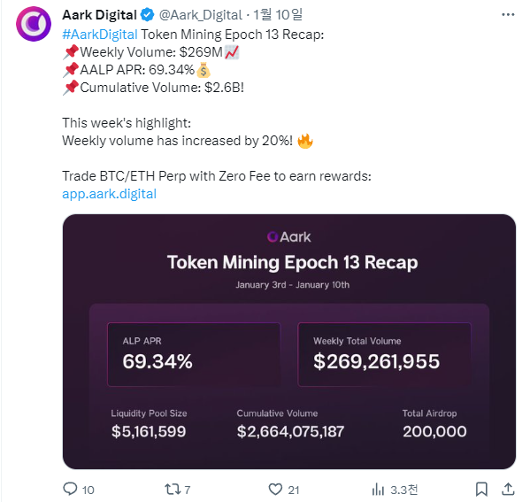 첫번째는 AARK로 현재 각광받고 있는 아비트럼 기반의 선물거래 DEX(Perp DEX)입니다.