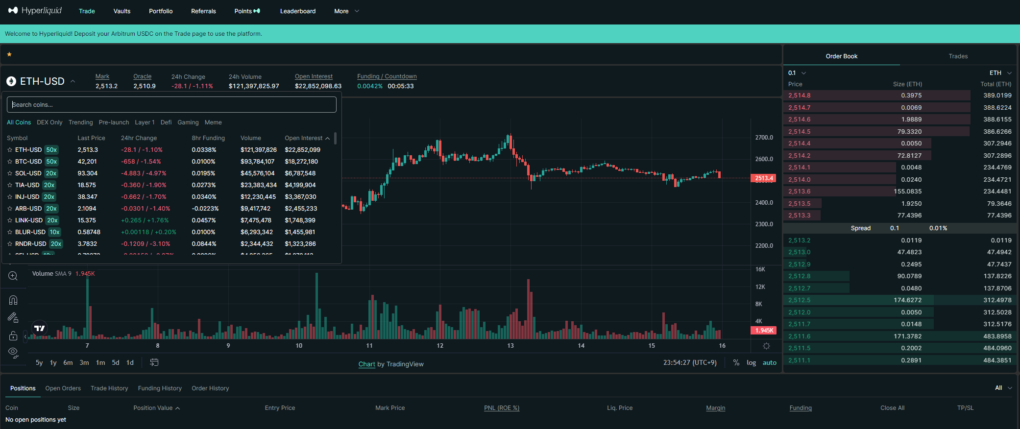 이번엔 Hyperliquid도 아비트럼기반의 유망한 선물거래DEX입니다.