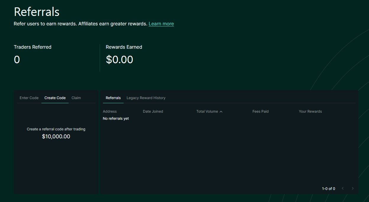 참고로, 현재 Hyperliquid는 거래시 최소 $10,000 이상을 거래량이 찍혀야지만 초대코드를 지원해주는 정책을 진행 중에 있어서 나중에 도달시에 따로 블로그글을 수정하거나 텔레그램을 통해서 올리겠습니다.