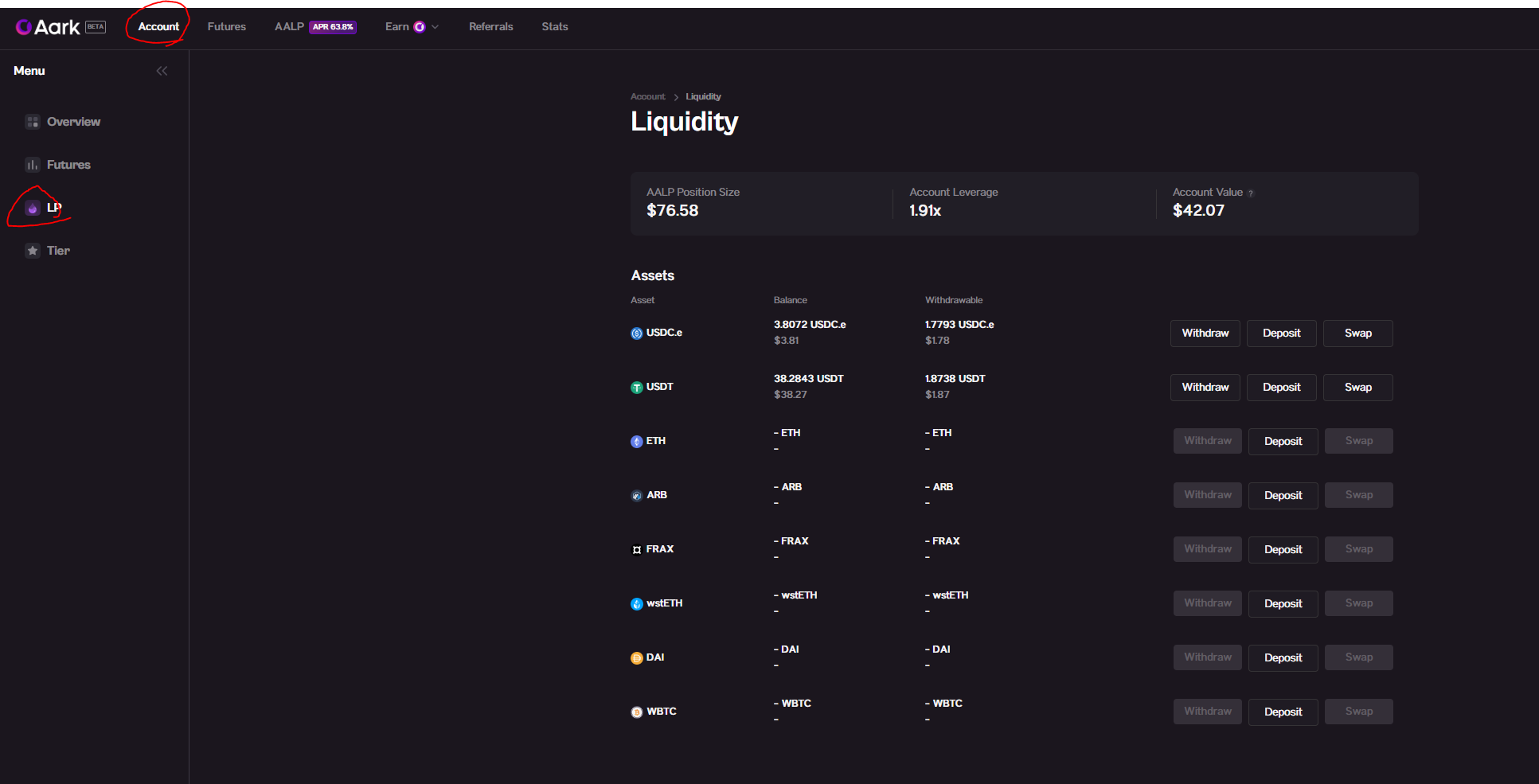 여기 보이듯이 지갑연결 후 Account에서 LP를 눌러서 들어와주세요.