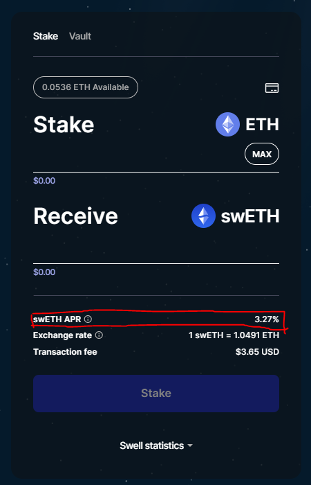 아까 이 항목들 중 맨 아래의 Swell Staked Ether라고 적힌 부분 보이시죠?