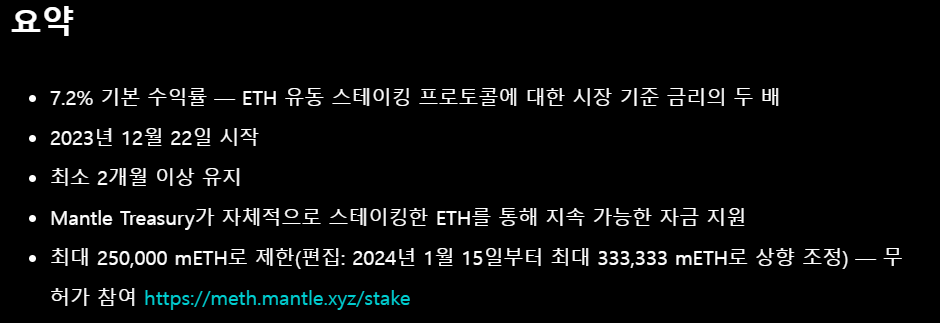 해당 부분이나 2월 6일부터는 Mantle Staked Ether도 추가될 예정이니 둘 중 하나 선택하시구요.