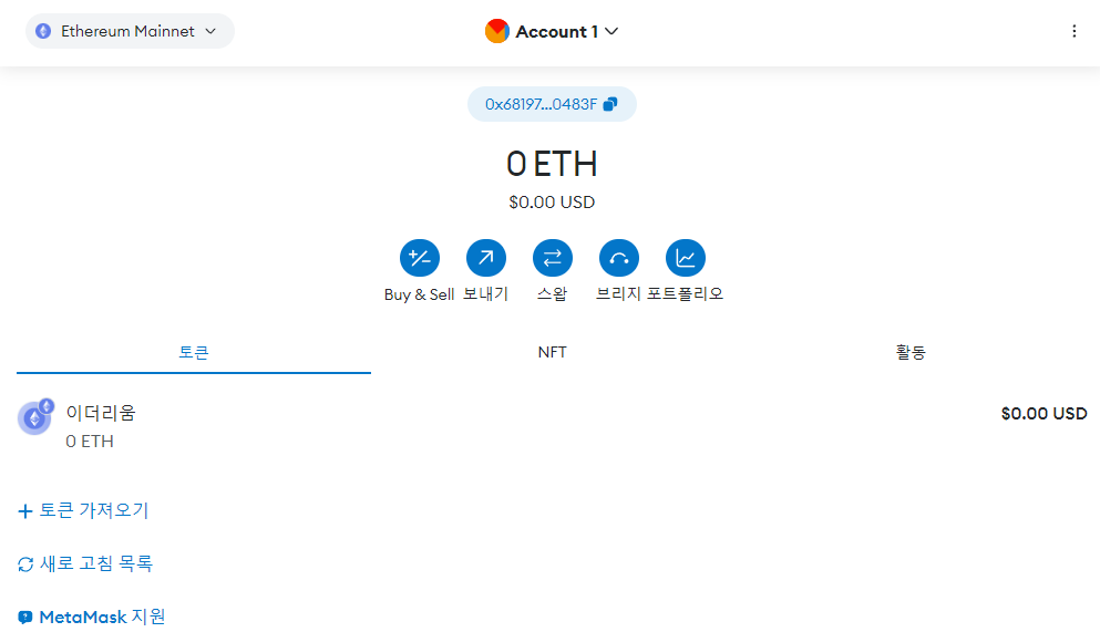 이렇게 지갑이 생성된 것을 확인할 수 있습니다.