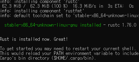 이렇게 되면 Rust 언어가 다운받아졌습니다.