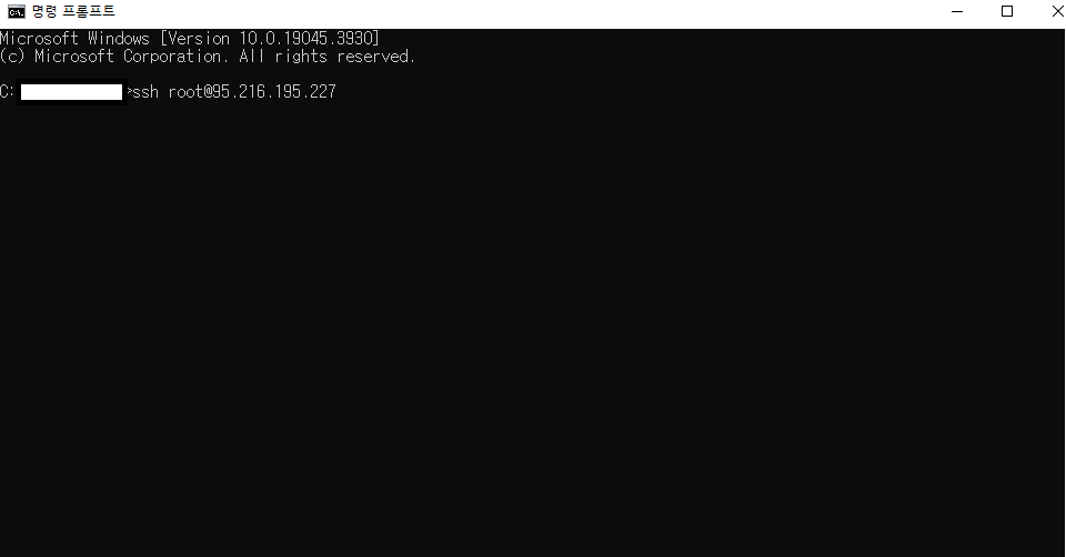 가상서버를 구매하셨다면 이전과 마찬가지로 CMD 창(윈도우+R 누르고 cmd 입력 후 엔터)을 통해 접속해주세요.
