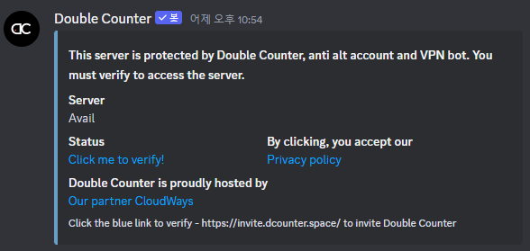 이 Double Counter라는 녀석의 Status에 있는 Click me to verify를 눌러서 본인인증 해주시면