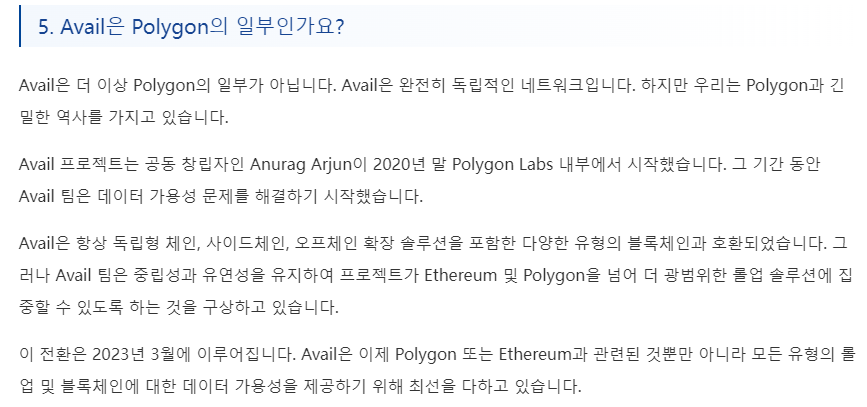 그 중 Avail은 더욱 효율적이고 쉽게 차세대 신뢰 최소화 애플리케이션, 소버린 롤업, 영지식 또는 사기 방지 기반 블록체인 애플리케이션을 구축하는 데 최적화된 블록체인이라고 합니다.