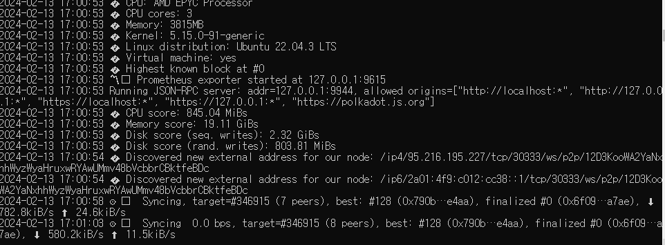 이렇게 뜨면 변경된 셋팅으로 노드 돌아가는 것 확인완료!