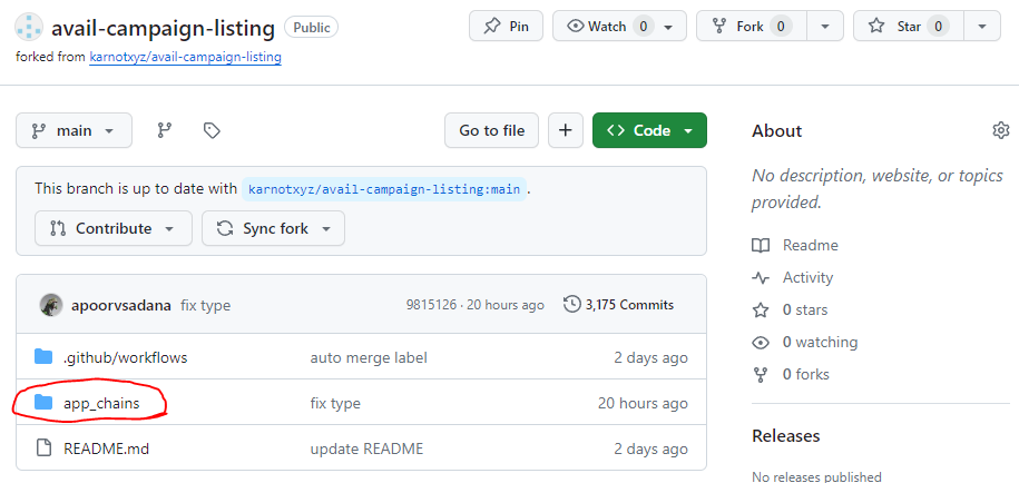 그럼 본인이 Fork한 Git의 이런 화면이 나오는데 동그라미친 app_chains를 눌러주시구요.