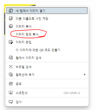 이미지를 마우스 오른쪽을 눌러 링크복사를 하시면 됩니다. 참고로 png기반으로 복사가 되어야 하니,