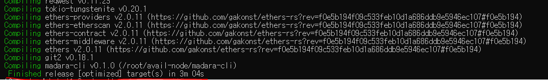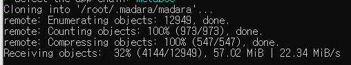 위 명령어 입력해서 마다라를 빌드해주세요. 한 5분정도 기다리시면 됩니다.