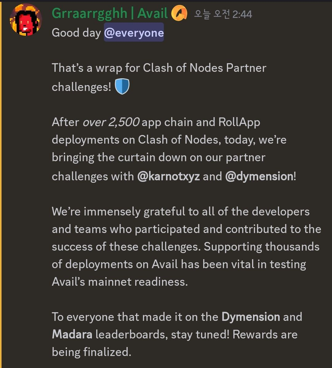 참고로, Avail 노드가 잘 작동되지 않을 수도 있으니까 몇 일 뒤에 다시 한 번 노드가 잘 돌아가는지 확인해주세요.