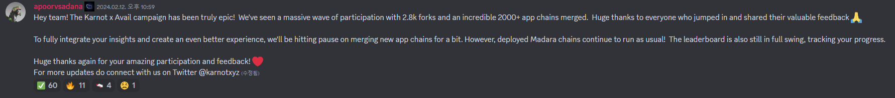 이 Karnot의 노드를 Madara라는 솔루션을 이용해서 작동시키는데, 거기에 Avail의 모듈러 기술을 활용한다~~~