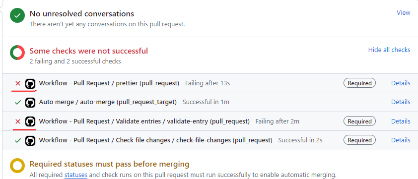요약하자면 Karnot의 마다라가 새로운 앱 체인을 병합하는 것을 잠시 중단되서 열릴 때까지는 prettier관련된 에러가 계속 발생한다는 뜻입니다. 다시 열리면 그 때 바로 진행하시면 됩니다!!