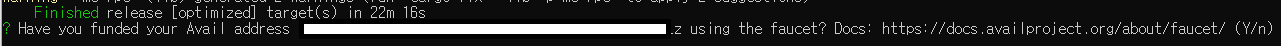 그리고 끝에 faucet 받았는지 묻는 내용이 나오면 Y를 눌러줍시다.