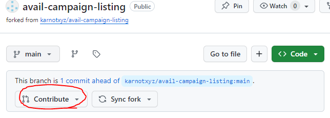 Contribute를 눌러서 Open Pull request를 눌러주세요.
