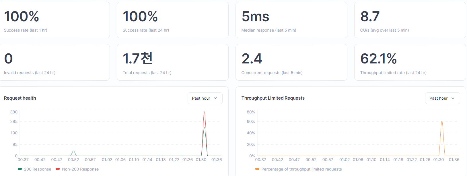 이런식으로 Success rate 100%랑 Total request도 잘 뜨는거 확인하면 끝!
