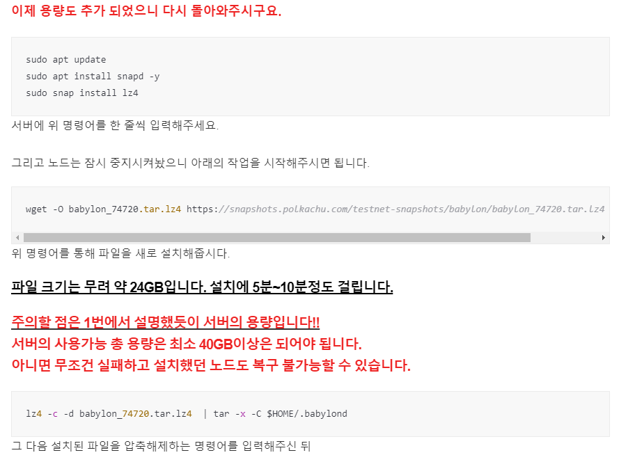 지난 번에 바빌론 테스트넷을 설치해서 노드를 운용하는 방법에 대해 설명드렸었죠? 이번엔 그 바빌론 테스트넷의 마이그레이션 작업 즉, 업데이트를 해줘야됩니다. 바빌론은 설치가 되어있어