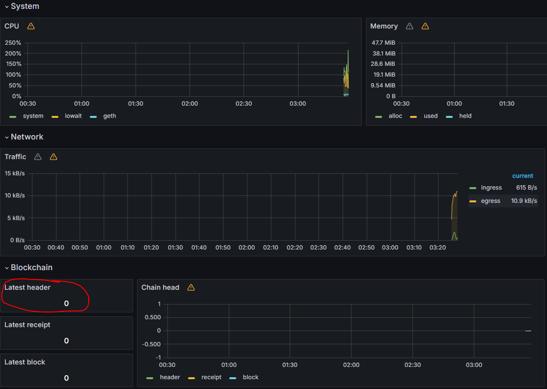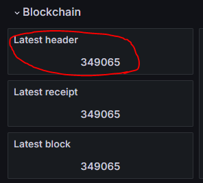 블록동기화는 Geth Dashboard의 Blockchain의 Latest header를 보시면 됩니다.