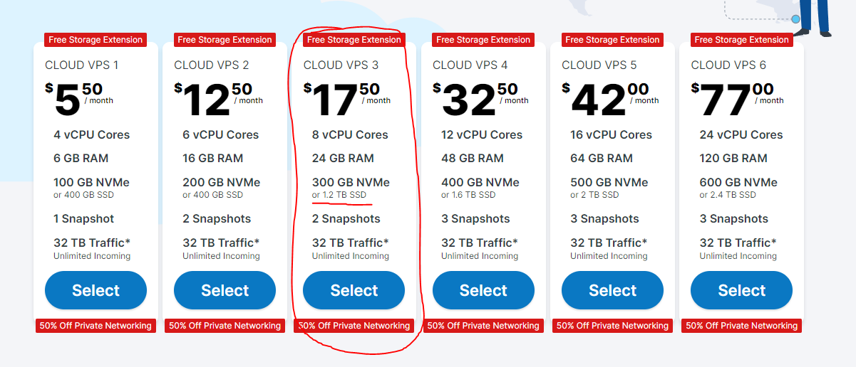 VPS with a lot of computing power for less. All instances have truckloads of RAM (starts from 8 GB), disk space, and 32 TB of traffic. Spin up your VPS now!