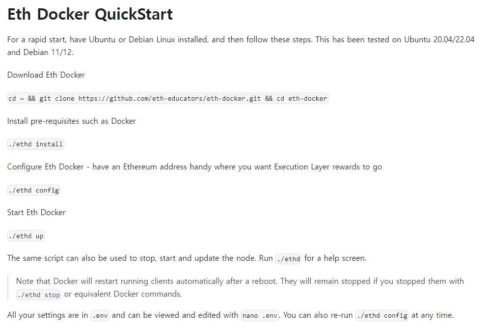 위 명령어 입력해주셔서 eth-docker 설치하고