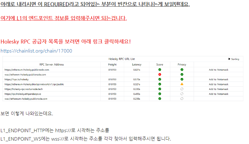 이번엔 Holesky RPC 구성했잖아요? 그러니 저를 따라 수정해주시면 됩니다.
