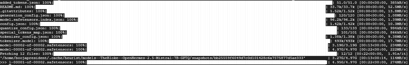 snapshot_download(repo_id="TheBloke/OpenHermes-2.5-Mistral-7B-GPTQ", revision="bb25559f6049d7c0d101428c6a7575877d5ae333", cache_dir="/home/{name}/.cache/heurist")