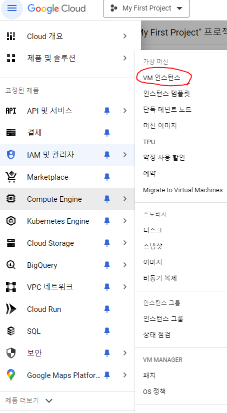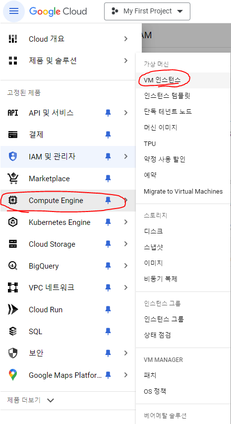 위에 보이는 Compute Engine을 눌러주시고 VM 인스턴스를 눌러주세요.