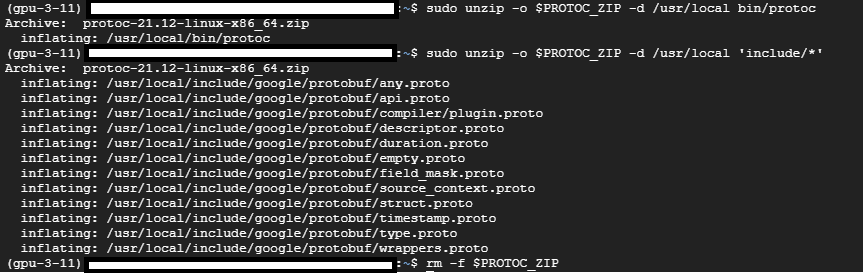 sudo unzip -o $PROTOC_ZIP -d /usr/local 'include/*'