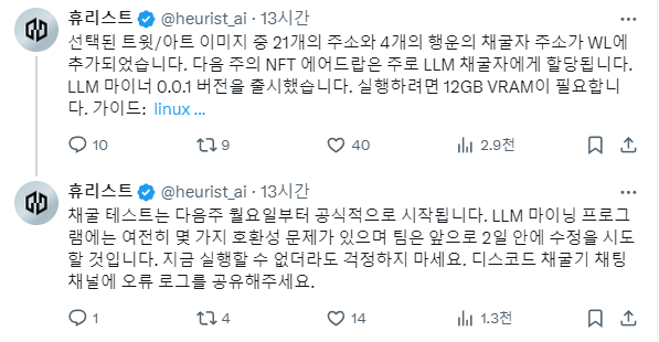 안녕하세요! 메타부입니다. 이전에 한 번 설명해드렸던 Heurist라고 AI 프로젝트 기억하시나요? 이 프로젝트는 AI랑 마이닝도 출시하고 여러가지로 커뮤니티에 하잎을 붙이는 녀석이긴한데... 아직