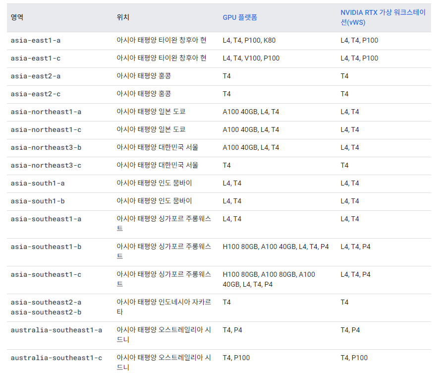 GPU 리전 및 영역 가용성 | Compute Engine 문서 | Google Cloud