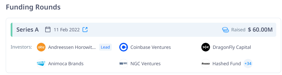 A16Z, 애니모카, 해시드, 드래곤플라이, NGC등등이 시리즈A를 참여해서 약 $60M 규모의 투자를 받은 프로젝트로 놓치면 안되긴 합니다.