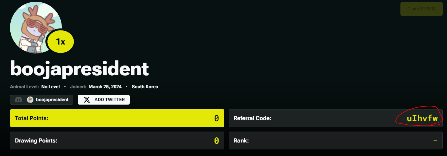 이 Everyworld도 위 Farcaster와 마찬가지 소셜기반의 dAPP인데, 현재 토큰 출시전에 사전작업 중이며 여러가지 소셜활동을 통해 점수 획득 및 점수를 2배로 획득이 가능하기도 합니다.