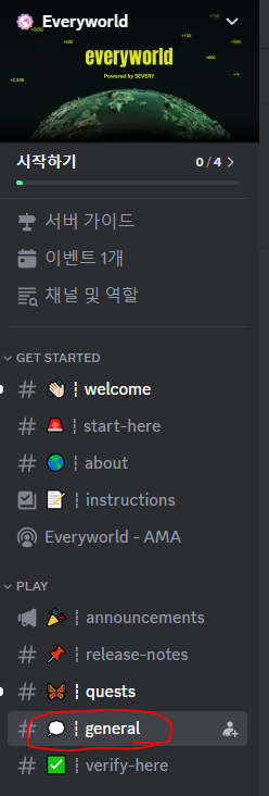 디스코드 채널을 보면 위 처럼 verify-here라고 있는데요. verify해주세요.