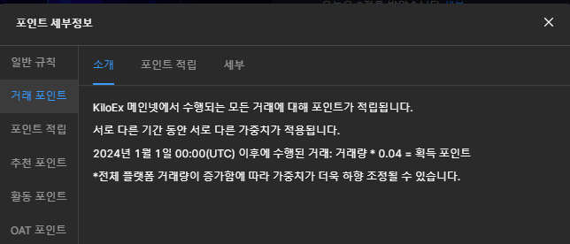 ◈ KiloEx 포인트 리워드 변경사항(2024.01.19 업데이트)