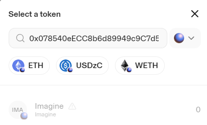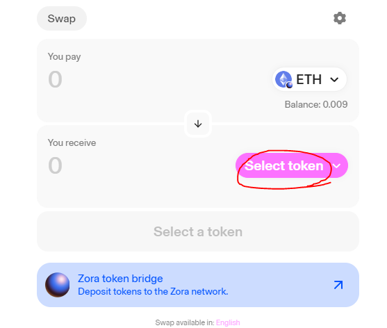 Swap Interface on Zora Network