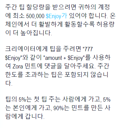 - 민팅시에 댓글(comment)에 1 $Enjoy와 같이 팁을 부여한다.