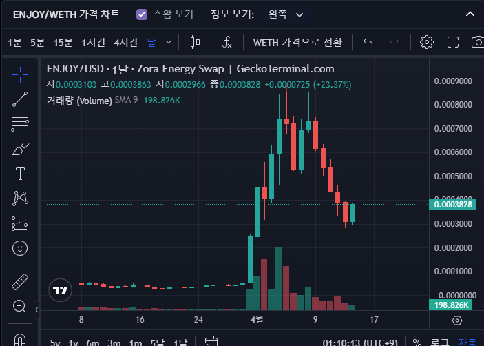 ENJOY/WETH - Zora Energy Swap의 Enjoy 가격 | GeckoTerminal