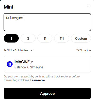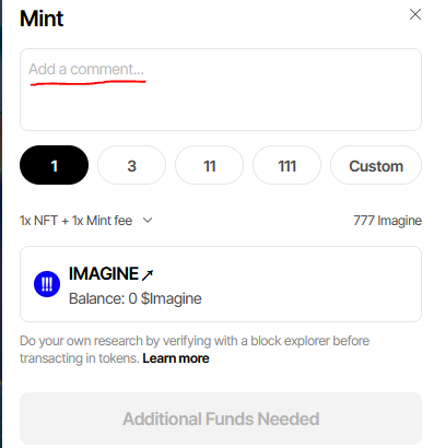 물론 보이듯이 민팅비는 777 $Imagine가 사용됐습니다.