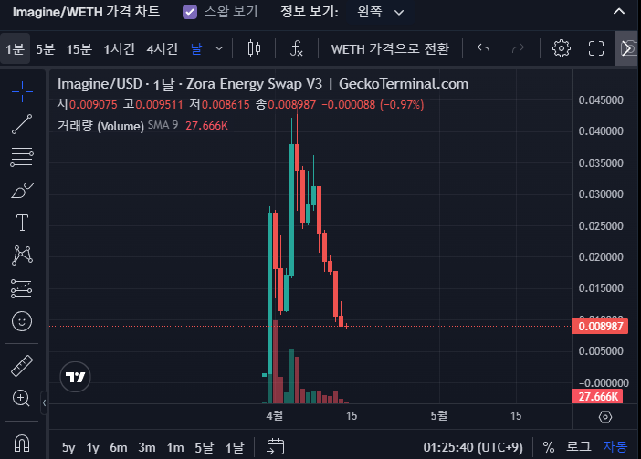Imagine/WETH - Zora Energy Swap V3의 Imagine 가격(수수료: 1%) | GeckoTerminal