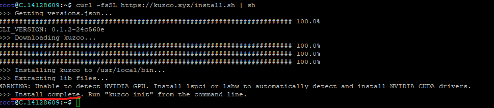 이런식으로 막 로그가 올라가면서 kuzco 관련 파일들이 다운로드 되구요.