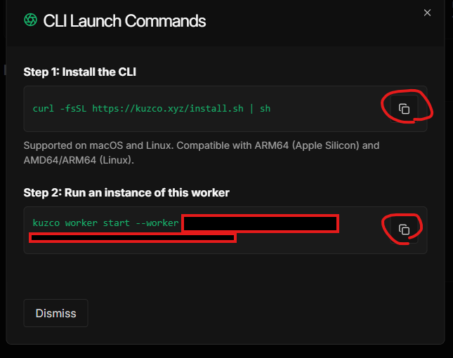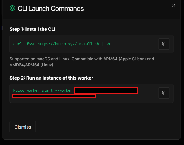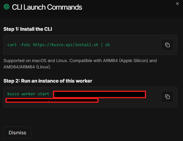 Run an instance of this worker의 명령어를 복사해서