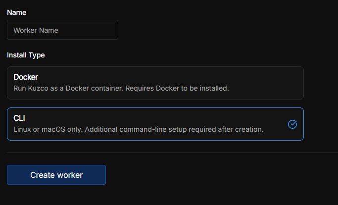 그럼 우측 상단에 Create Worker라고 나올텐데 눌러주시고